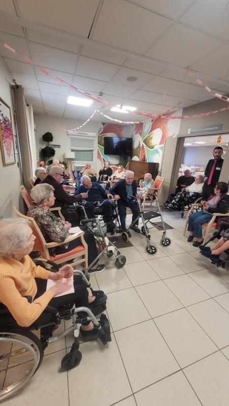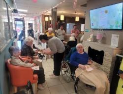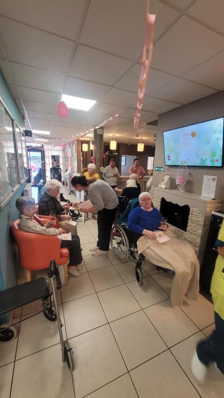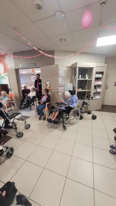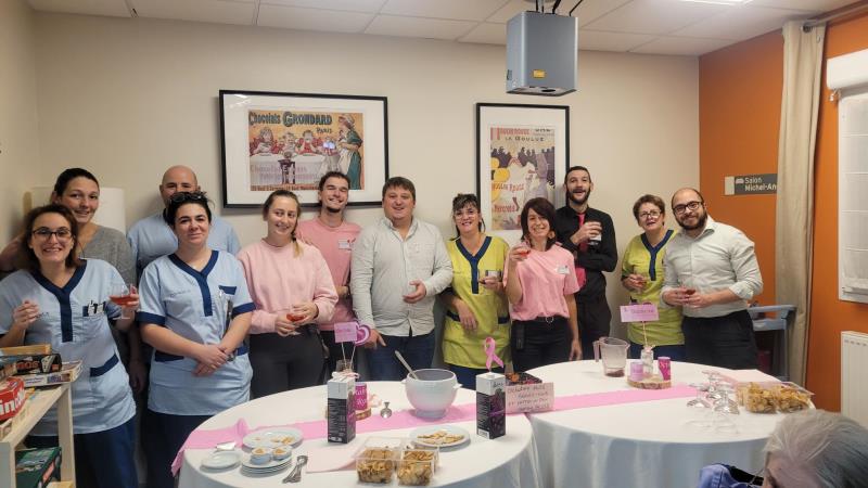 Résidents, familles et personnel se sont réunis autour d’un moment chaleureux, festif et engagé. L’ambiance était à la fois douce et joyeuse, avec une décoration rose, des boissons et gourmandises assorties, et surtout, beaucoup de sourires