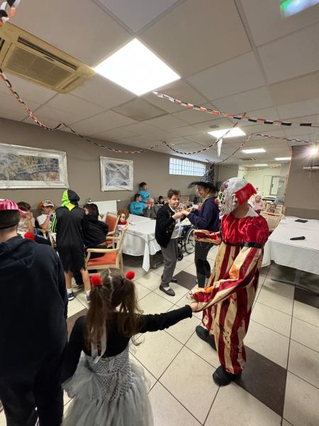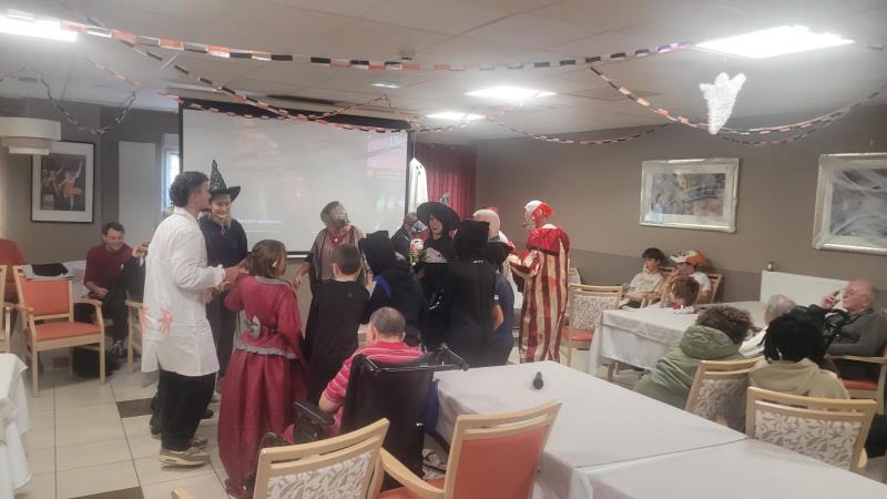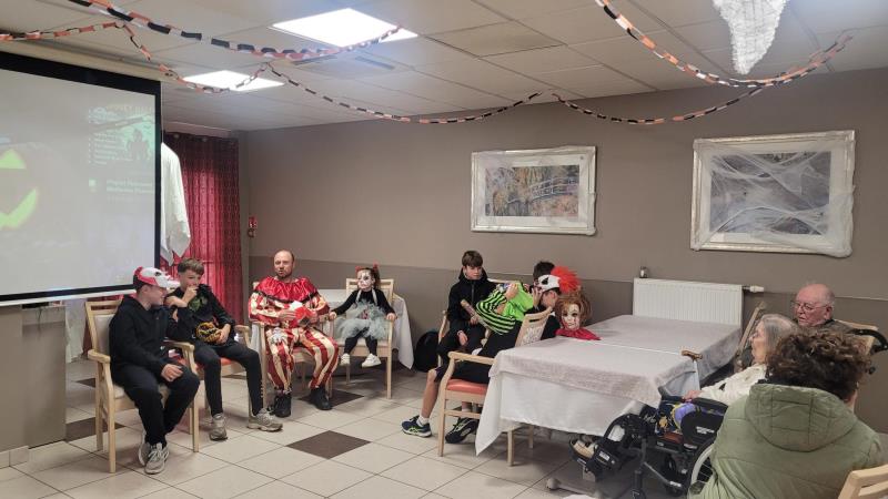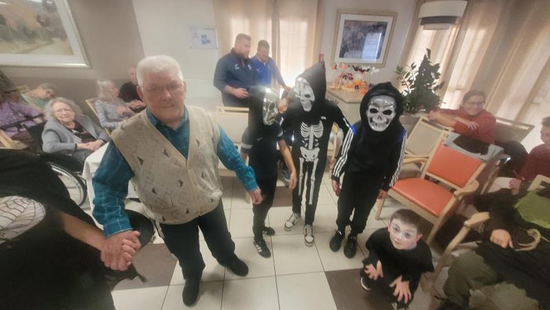 Le vendredi 31 octobre, les résidents ont vécu un après-midi festif et émouvant grâce à la visite des joueurs de l’US Blanzy et de personnel. Déguisés pour l’occasion, les jeunes sportifs et le personnel ont partagé rires, échanges et complicité avec les aînés dans une ambiance chaleureuse et colorée.