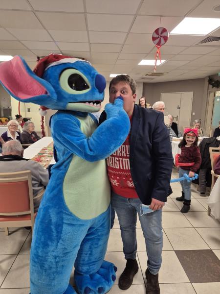 Dès leur arrivée, les petits invités ont été accueillis par Stitch, la célèbre peluche bleue, qui a fait sensation auprès des familles. Puis, le moment tant attendu est arrivé : le Père Noël en personne a fait son entrée, distribuant sourires et émerveillement.
