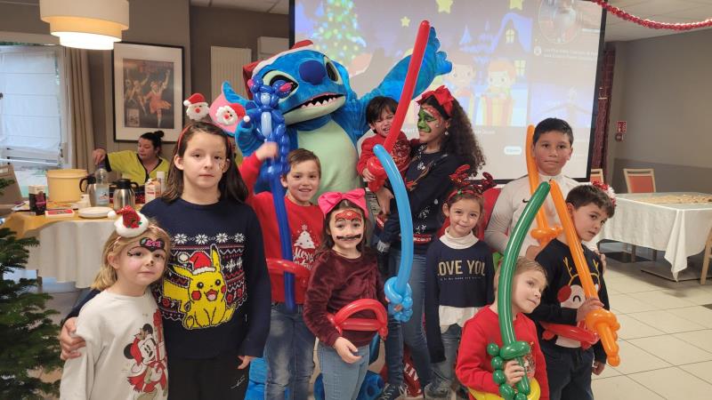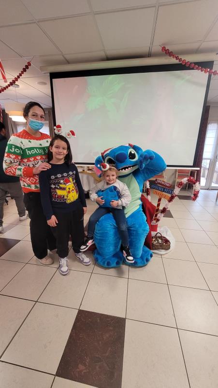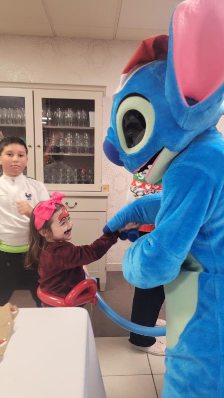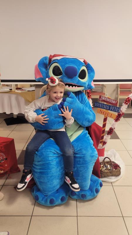 Dès leur arrivée, les petits invités ont été accueillis par Stitch, la célèbre peluche bleue, qui a fait sensation auprès des familles. Puis, le moment tant attendu est arrivé : le Père Noël en personne a fait son entrée, distribuant sourires et émerveillement.