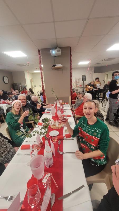 Le vendredi 19 décembre, notre résidence a célébré Noël autour d’un repas convivial réunissant les résidents, leurs familles et le personnel. La salle de restaurant s’est parée de décorations scintillantes et d’une ambiance chaleureuse, propice aux échanges et aux sourires.