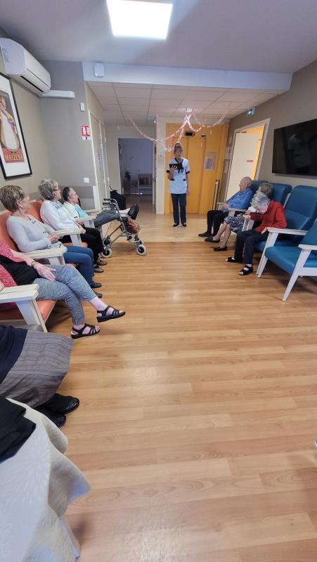 Parmi les initiatives mises en place, l’animation chant en couloir s’est imposée comme un moment fort et fédérateur. Evelyne, muni de micros et d’enceintes mobiles, parcoure les couloirs pour offrir aux résidents des instants musicaux directement depuis le pas de leur porte. Chacun peut ainsi profiter des chansons, fredonner, taper dans les mains ou simplement écouter avec émotion.